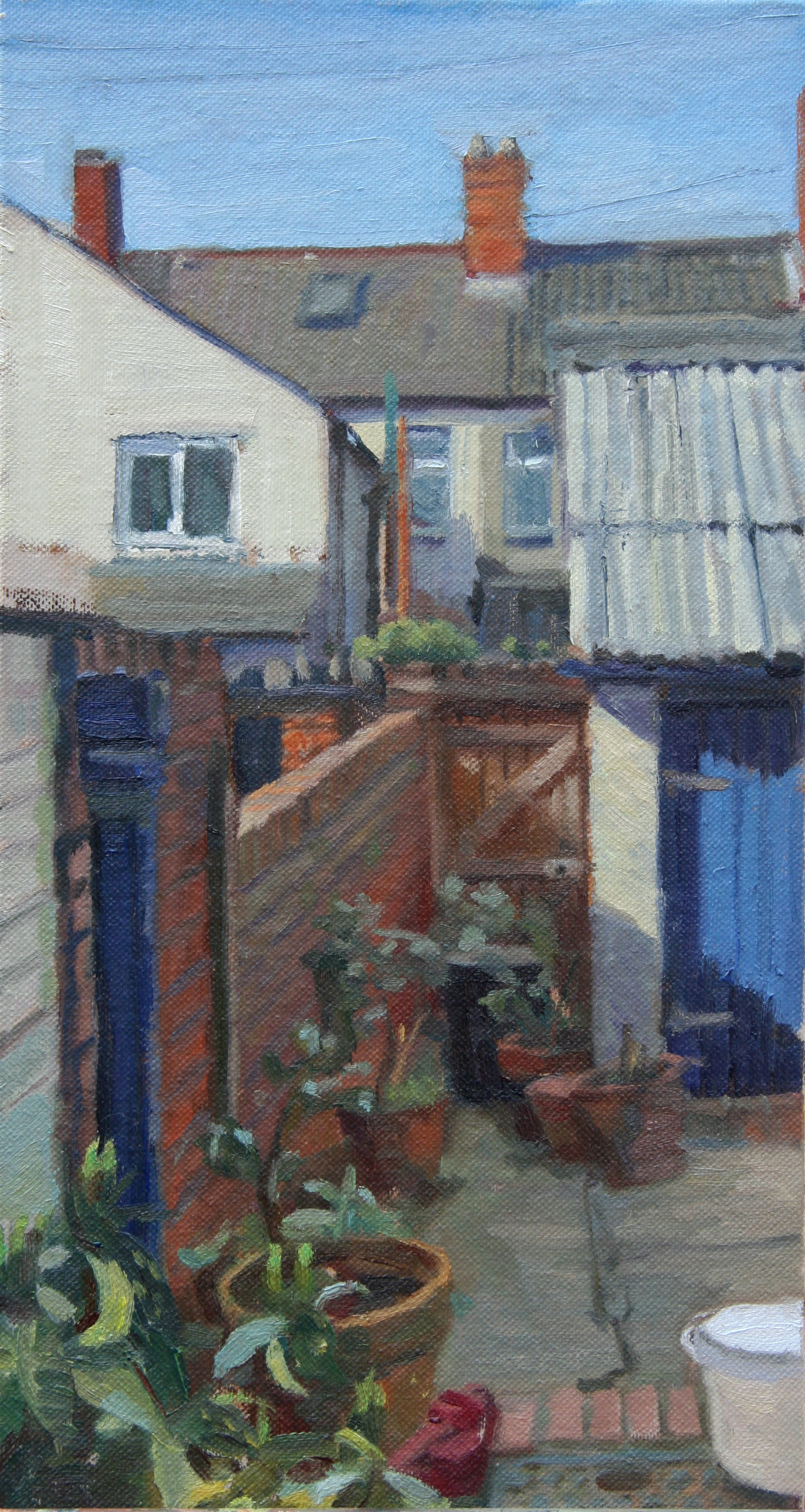 Backyard, Cardiff. Oil on Board, 13.5x7ins