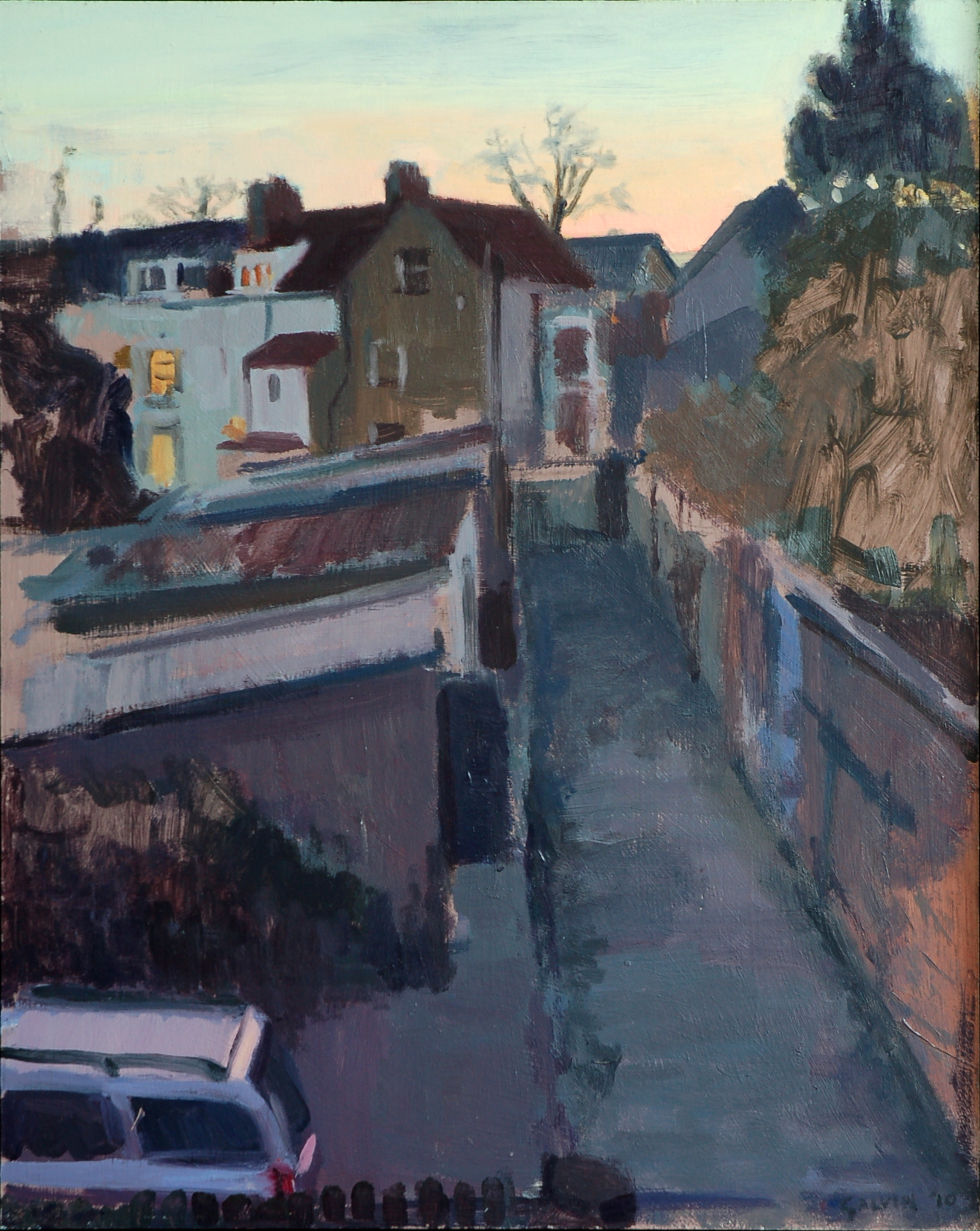 Twilight,Back Streets, Cardiff. Oil on Board 16x20ins