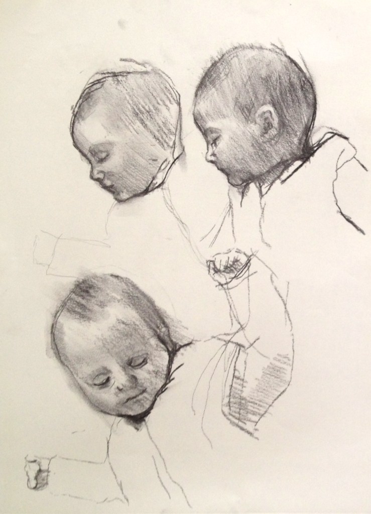 Study for portrait of Elisabeth Elias. Charcoal on paper